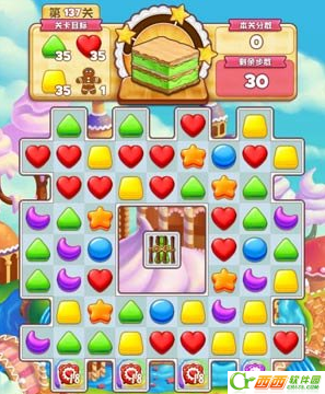 再看任务目标,需要消除的是三种颜色的曲奇和一个姜饼人,几乎既可以说我们的目标就一个,就是那个姜饼人。一共有三十步的机会,如何把姜饼人消除呢。首先曲奇很分散,想要制作出特殊曲奇的就必须依靠运气和思考了。