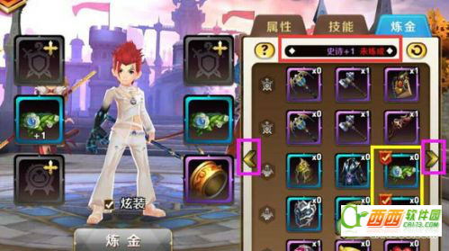 【紫色框】----可以左右切页 看到之前以及之后炼金所需要的装备