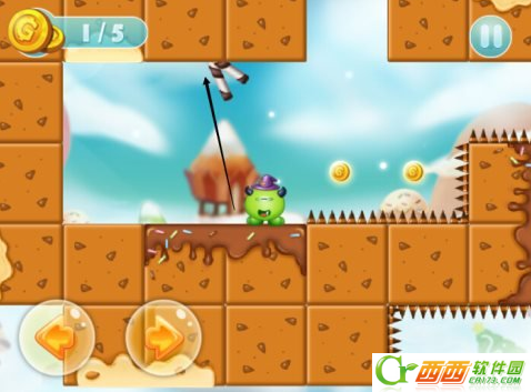 我们吃掉地刺左侧的金币之后,我们去我们头顶的上方。就是把整个地图旋转一下,使我们获得有利的位置。