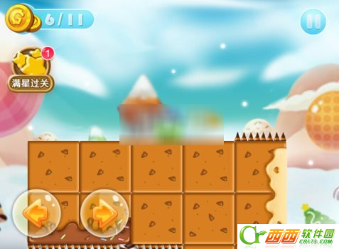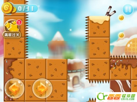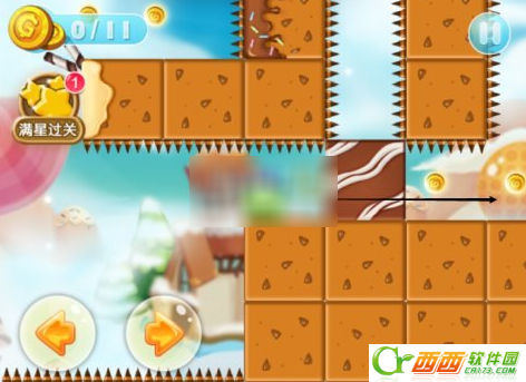 我们往下走,我们就会遇到巧克力方块,然后我们坐着巧克力方块,滑下。