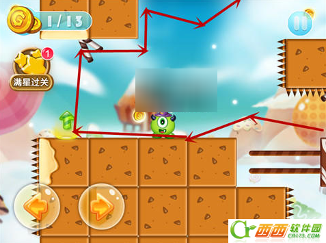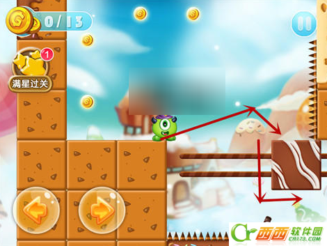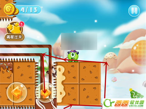 当方块移动到另外平台上时,按照上图指示移动,注意要利用反响装置来改变游戏方向。