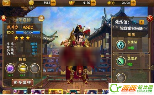 点击【修炼】,寇仲可以根据目前状况修炼长生决、乌渡术,提高作战实力~小编的长生决已经修炼到10级啦,战斗力如何,咱们战场上见!
