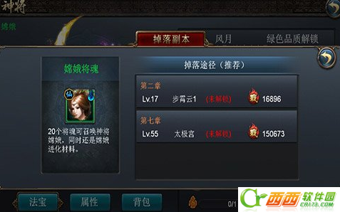 如果玩家不满足于只使用一个神将,可以在神将界面中点击自己喜欢的神将头像。点击召唤按钮下面的小加号,就可以得知这个神将的掉落途径。然后点击相应的副本搜集神将将魂吧!只要攒够将魂就可以召唤神龙(神将)了!