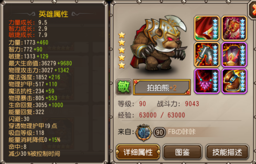 2、有人说拍拍熊的物攻不够高,但实际上,拍拍的四技能完美地弥补了他物攻基数较低,外加他物暴达到恐怖的1358,这就是为什么大家都爱用他打副本boss的主要原因