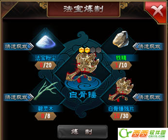 法宝炼制可以增加法宝伤害,以及登场全新的异能,法宝炼制除了必须的灵石以外,还需要法宝粉尘、铁精、法宝残片、碧灵木等材料,炼制不同阶段的法宝,需要的材料也各有不同。不过基本的获取途径都差不多。