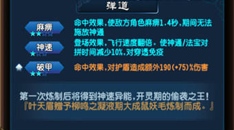 2、神速:登场效果,飞行速度翻倍。使神通/法宝对拼时间减少10%,对穿透免疫。