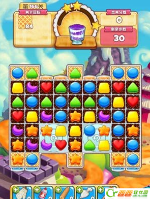 碎碎曲奇166关3星攻略,碎碎曲奇166关怎么拿3星评价?第166关比较麻烦的地方在于曲奇会乱跑,而且中间的曲奇比较厚实,花色较多,导致30步步数不是很好处理,而且上面那些尖尖角角处理起来也不方便,又给我们增加了难度。