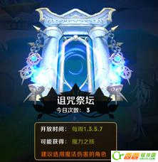 进入战斗界面后玩家可以点选恶魔深渊进入副本,其中诅咒祭坛副本是每周一三五七开放的,每次开放时可以刷3次副本,在这个副本中玩家可以获得魔力之核,这是升级阵型的重要道具。
