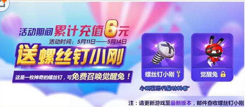 玩家现在参与活动,首充6元就可以获得螺丝小刚,之后就可以获得觉醒兔。