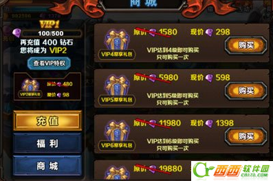 累计充值五百钻石即可升级成为VIP2