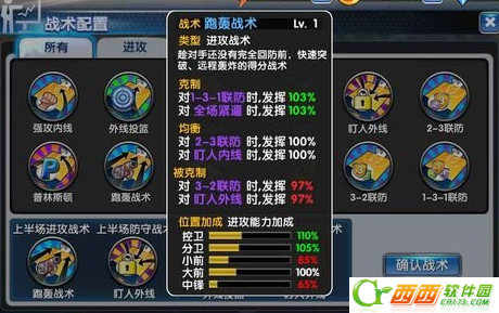 由上图我们可以看出当我们佩带武将羁绊的时候小前锋位子如果带有终结此次得分的将会抢掉后卫线的出手权,所以想要战术落实得更加稳健,建议各位玩家在不是主攻点的位置,放置防御羁绊,比如中锋带: