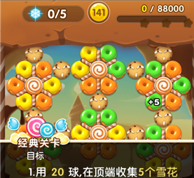 全民泡泡大战的第141关是一个经典关卡,在这一关中,玩家要在限定的20个球内收集到顶端的5个雪花,可以说是难度不小,不过这一关的阵型分布还是很有规律的,我们只要算好角度,想要三星通关也不是很难的一件事,我们就一起来看一下全民泡泡大战的第141关要怎么三星通关吧。
