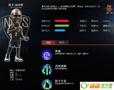 第七位压轴出场的是大满贯得主 凯文、加内特有狼的攻击能力以及狼一般的防守能力与爆炸力,让狼王早年成名, 现役球员里面数一数二的大前锋之一,以及游戏里面的首发全体加成BUFF 是我大前锋或者首发中锋喜爱的球员之一, 由于此款球员被暗改过羁绊技能,大多数人开始转用其他技能或者防御技能,给大家的建议如果缺大前锋可以值得考虑哟!