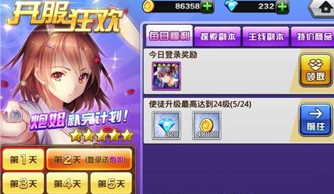 当我们连续登陆两天,就可以在开服狂欢中领取到炮姐了。