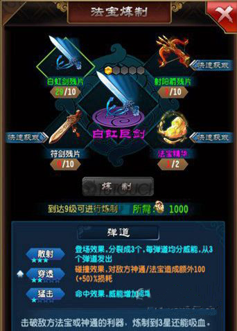 获取白虹巨剑后,也是一星一级的,后续仍需要上述法宝的碎片来升星,
