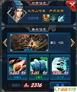 九窍山弟子的第二个神通是降鬼术,可以削弱消灭该神通/法宝20%的威力,为了保证风刃术输出的最大化,将它放在第三神通的位置,避开降鬼术。功法依然是地灵功,2级石弹术,1级元壁术,1级风刃术。