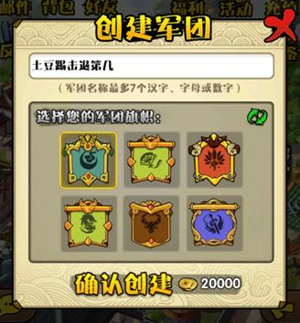 一切准备就绪后需要消耗20000金币作为创建军团的费用,即可拥有自己的军团了!