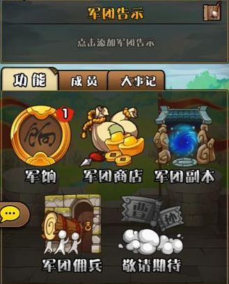 军团是三国笑传中最重要的玩法之一。主公们在加入军团后,不但能认识更多的好友兄弟,更有丰富的各种福利,帮助主公们更快的提升自己的实力!