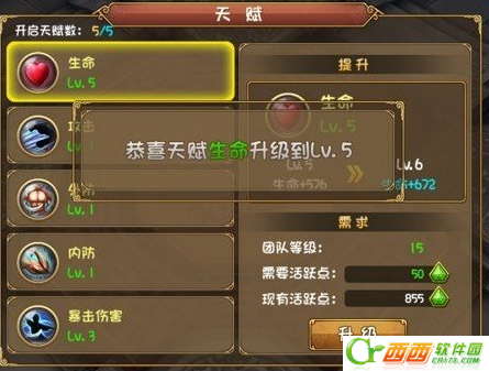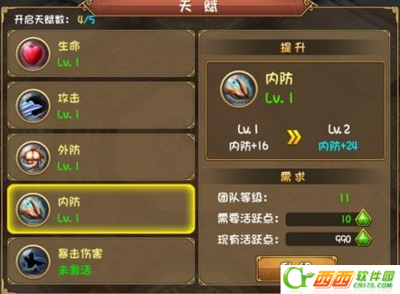 天赋激活:当然了,进入天赋系统界面之后,想要激活哪一个天赋技能要根据自己的团队等级来决定,升级操作也可以提升不同天赋属性效果,不过天赋升级是需要消耗活跃点的哦。