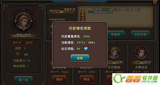 竞技场:战斗获胜提升排名能获得大量钻石、荣誉,失败也能获得少量银币、荣誉