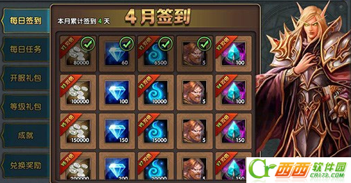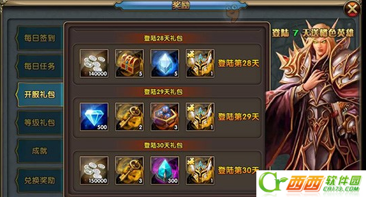 开服礼包:登陆的天数越久获得的开服礼包越丰富,钻石越多。