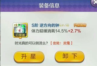 逆方向的钟作用是体力延缓消耗,初始是5.5%,满级是14.5%