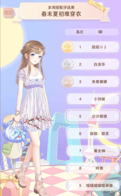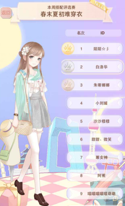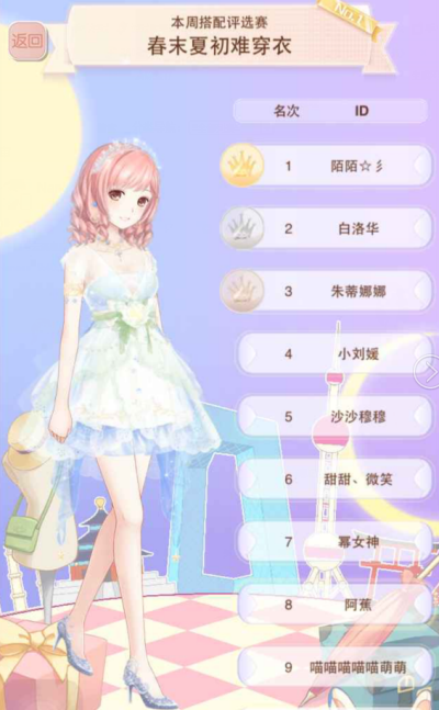 说到底这期主题就是两个方向——春天or夏天,只要不是傻到搭配成冬天那种保暖的装扮,取得的成绩应该都还不错的,剩下的就要看玩家们评分的选择了。