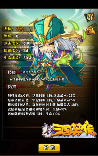 为此在三国笑传中,面对阵容失血比较严重,那就必须要一个奶妈来改变战局,而华佗无疑是玩家最好的选择!