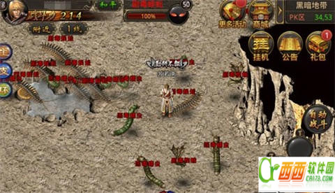 矿洞玩法是游戏主要玩法的一部分,蜈蚣洞(盟重地牢)、(兽人古墓)骷髅洞、僵尸洞(比奇篇)、骨魔洞尸魔洞、猪洞等。