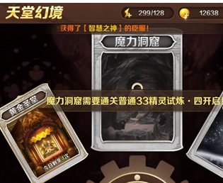 魔龙与勇士天堂幻境中有经验神庙、黄金神堂、魔力洞窟、圣魂秘境几种关卡玩法,几个玩法开启是有规定时间和等级的。