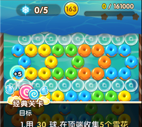 如果没有任何特殊子弹的话,消去中间甜甜圈的部分,也是可以收集到5个雪花的。