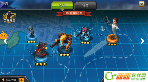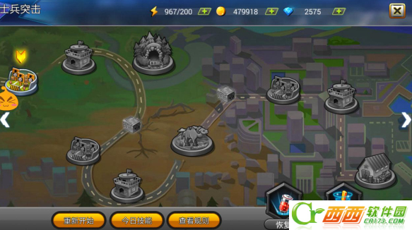士兵突击:(34级开放)每次挑战可挑选3位伙伴出战,已阵亡伙伴不会复活,完成训练可获得星星、金币、装备强化石等奖励,每天重置挑战次数。
