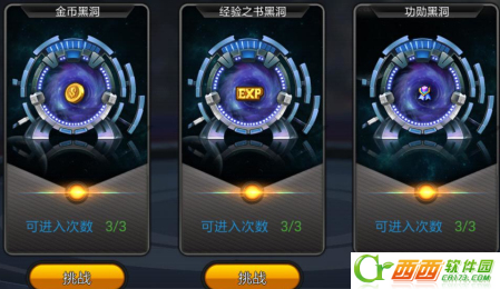 黑洞探索:(21级开放)分金币、经验书、功勋三种模式,完成挑战可获得相应资源。