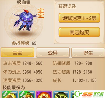 推荐理由:吸血鬼在69应该是最受欢迎的召唤兽了,因为他资质好、技能多,最高可达5技能,是各个炼妖达人的首选!!!