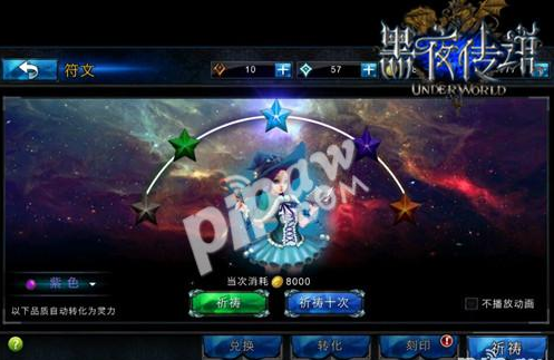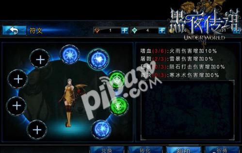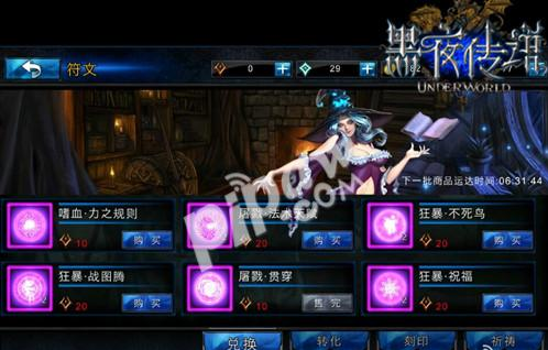 进入《黑夜传说》游戏界面,玩家可以点击符文系统的主城图标进入符文界面,通过消耗金钱召唤女巫获得力量强大的符文、灵力或者符文碎片。