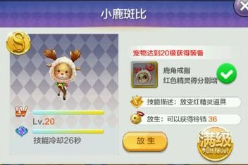 小鹿斑比技能是红色精灵得分剧增,满级26秒,