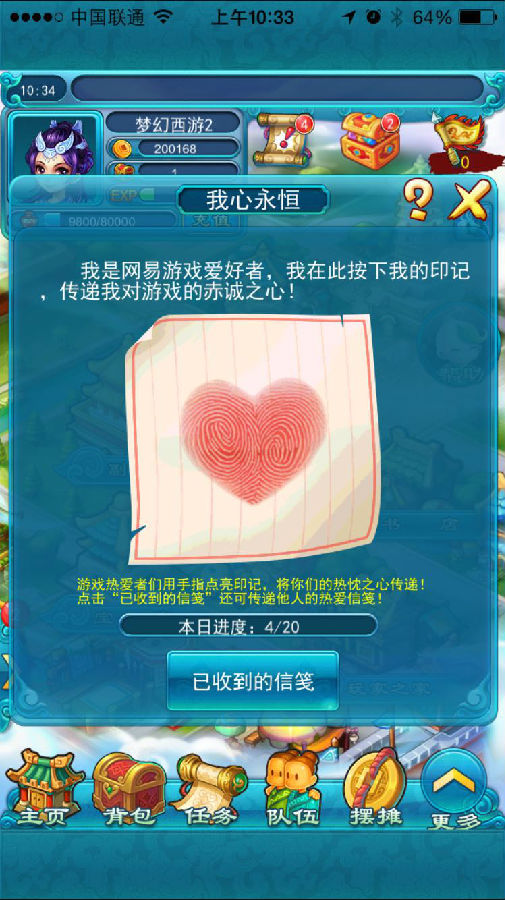 活动期间,玩家点击首页上方卷轴中的“我心永恒”图标即可进入玩法。玩家可在界面上的热爱信笺上印下自己的印记,记录下对游戏的热忱之心;然后这片热情将会被传递给所有友好度超过100的好友,同时玩家将获得热爱葫芦一个。当自己发出的信笺被传递达到5次,还将收获一份额外奖励!