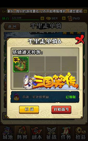 千里走单骑与其他关卡一样,在战斗之前会清晰明了的看见战利品。