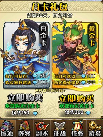 只需花费150钻石,即可每日获得50钻石,另外购买白金卡额外赠送100钻石。