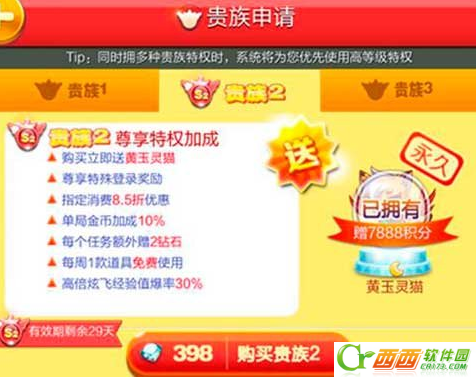 贵族2:花费钻石398颗——增送价值7888积分的宠物黄玉灵猫