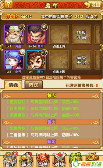 先说援军,由于援军的属性只有10%加成到阵容中,所以在援军中蓝紫金差距不会非常大,而且蓝色武将更容易满级满星,再看看情缘,只有出战武将才能触发情缘,援军中的武将可以配合触发出战武将的情缘。