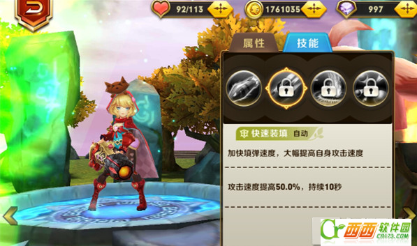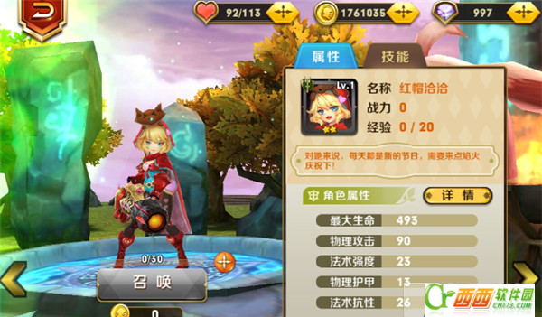 红帽洽洽是一名攻速优秀的游侠,她比其他游侠拥有更强的控制能力,应该着重培养她的暴击属性。
