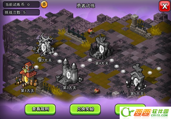 玩家可以点击游戏画面虚空之门,之后显示三项信息,提速,升级,进入,玩家可以点击信息了解虚空之门,之后点击进入会出现勇者试炼的界面,这时候玩家就可以从第一关开始进行通关试炼了!~每天有五次挑战机会~每次试炼挑战成功会获得一定数额的试炼币~