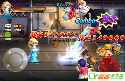轻松搞定之后继续往里走,糟糕!太轻敌了,中了埋伏~在第二幕当中,一开始千万不要往中间走,因为中间的位子会有一个戴眼镜的大胖子利用他硕大的身躯扑向你...在这一幕明显小兵进行了升级,除了刚刚看到的那群大叔,还有几个戴眼镜的大胖子,可别以为他们没有威胁,他们虽然很胖,但是相当的灵活。会翻滚着进行攻击,千万不要迟疑,靠灵活变动的走位进行攻击。