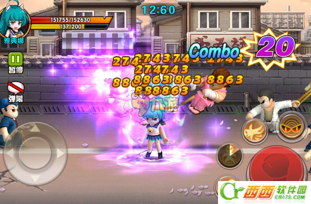 跟着跑到第二波那里,会看到一群拿着双节棍的小怪,带着2个穿着白色衣服拿着黄色木棍的,这里要值得注意的是,如果不幸被木棍敲中,是会跌倒的哦,爬起来那可都是时间啊,另外2个穿着粉红色格斗服的大叔,小苍老师给小伙伴的建议是,还是直接用突击技能,不要等他们反抗,一堆棍子敲打到身上也是很疼的哦。