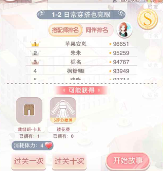 以上就是奇迹暖暖的第一章第二关的S通关搭配了。