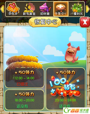 12:00-14:00恢复50点体力;