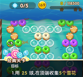 全民泡泡大战的第169关是一个经典关卡,在本关中,玩家要在25个球的限制之类,在顶端收集5个雪花,其中最大的阻碍就是关卡中的一些吸色泡泡,在消除的时候,我们只要注意下阵型,要消除还是很简单的。那么我们就一起来看一下全民泡泡大战的第169关应该怎么三星通关吧。