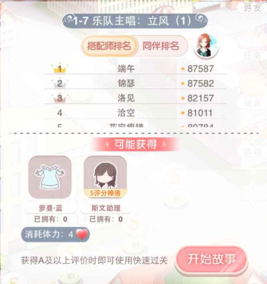 以上就是奇迹暖暖第一章第7关的S搭配的推荐了,暖粉们可以过来看一看。