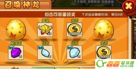 每天的0点都会自动刷新一次龙蛋。而砸龙蛋则需要消耗幸运锤,如果我们幸运锤用光的话,那么可以使用30钻石购买一次砸蛋机会。而如果所有的蛋都砸光,那么如果我们是VIP5以上就可以再刷新一次。